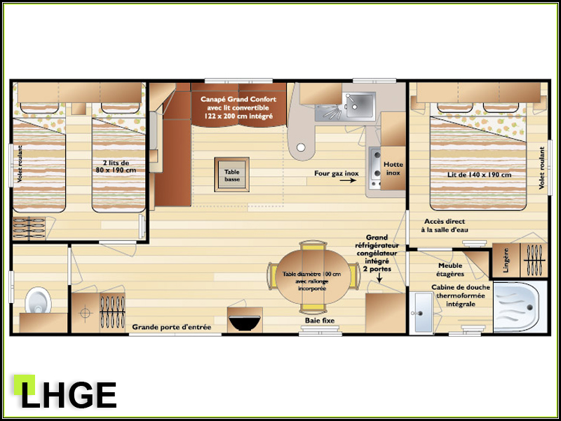 Ce joli mobil-home spacieux et lumineux est idéal pour passer des vacances en famille entre amis, avec ses deux chambres séparées, son grand salon, sa salle à manger et sa cuisine.
