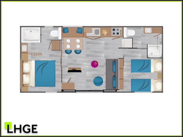 Le prix comprends le mobil-home installé sur parcelle avec fourniture d’une climatisation réversible et d’une terrasse bois.